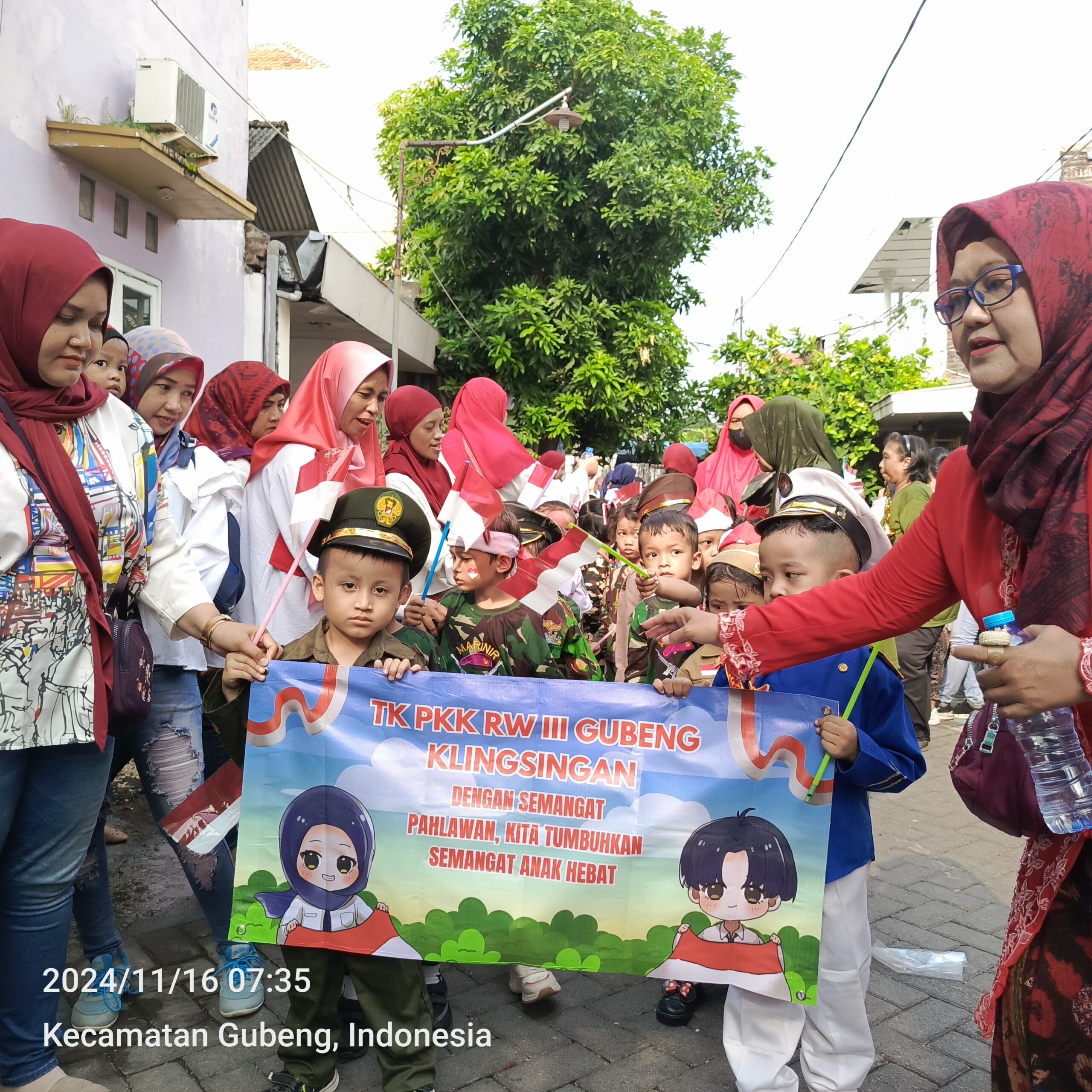 Salah satu peserta yang turut berpartisipasi adalah TK PKK RW III Gubeng Klingsingan, yang tampil memukau dengan kostum dan semangat mereka.