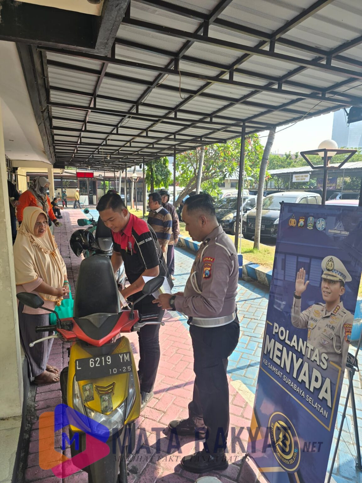 SURABAYA || Matarakyat.Net – Dalam upaya meningkatkan pelayanan publik serta memperkuat hubungan yang lebih humanis antara kepolisian dan masyarakat, Satuan Lalu Lintas (Satlantas) Polresta Sidoarjo menggelar program “Polantas Menyapa” di Kantor Bersama (KB) Samsat Surabaya Selatan, Jumat (10/10).