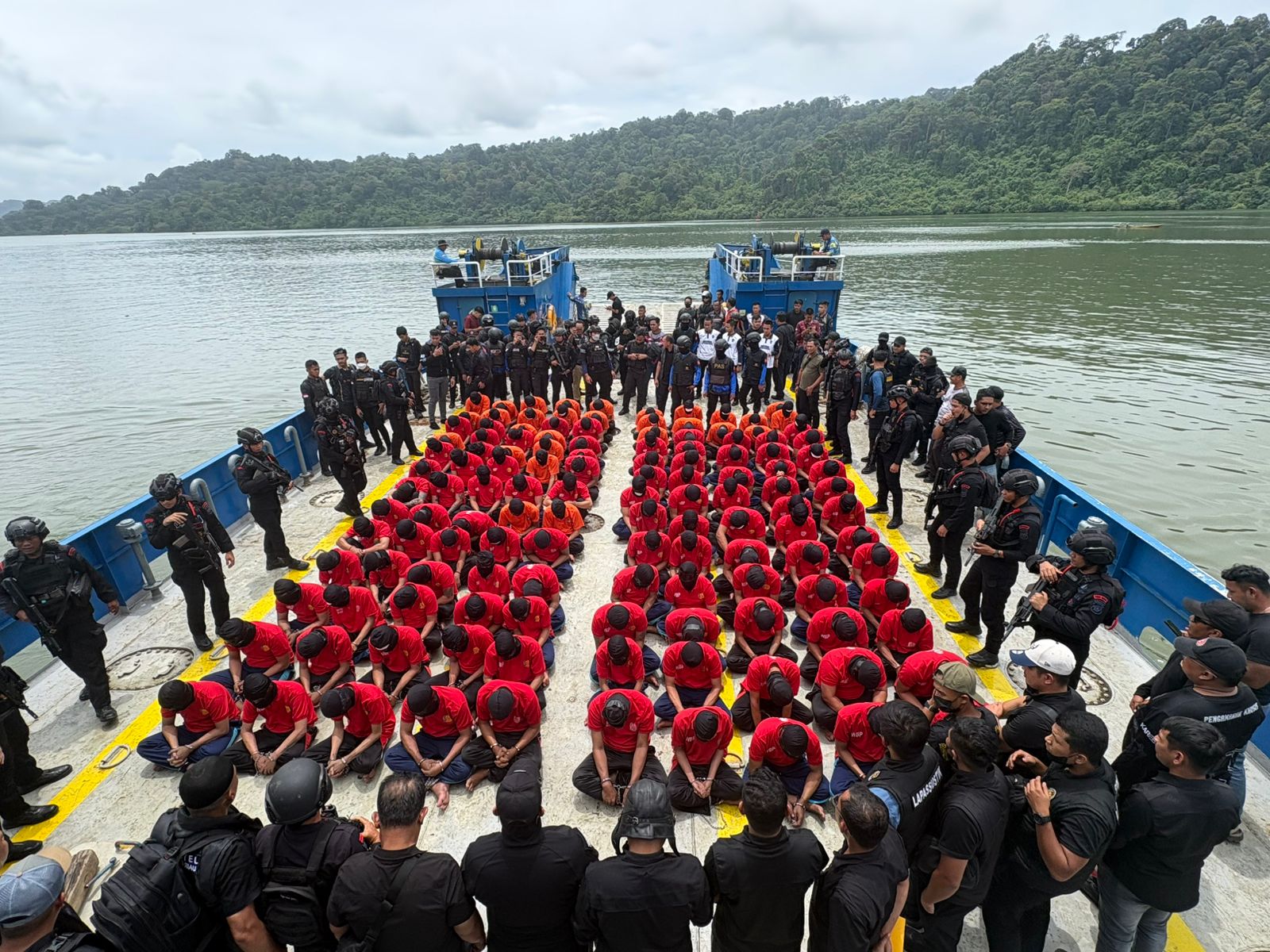 “Proses pemindahan berjalan lancar, 130 warga binaan high risk berasal dari wilayah Jambi, Riau dan Banten. Di Nusakambangan mereka ditempatkan di 2 (lima) lapas, yaitu 5 orang di Lapas Batu, 31 orang di Lapas Karanganyar, 17 orang di Lapas besi, 30 orang di Lapas Gladakan, 17 orang di Lapas Narkotika dan 30 orang di Lapas Ngaseman. Penerimaan dilakukan sesuai SOP, antara llian pemeriksaan kesehatan dan kegiatan administrasi lainnya,” kata Irfan, Kepala Lapas Kelas1 Batu, sekaligus Koordinator Wilayah Nusakambangan.