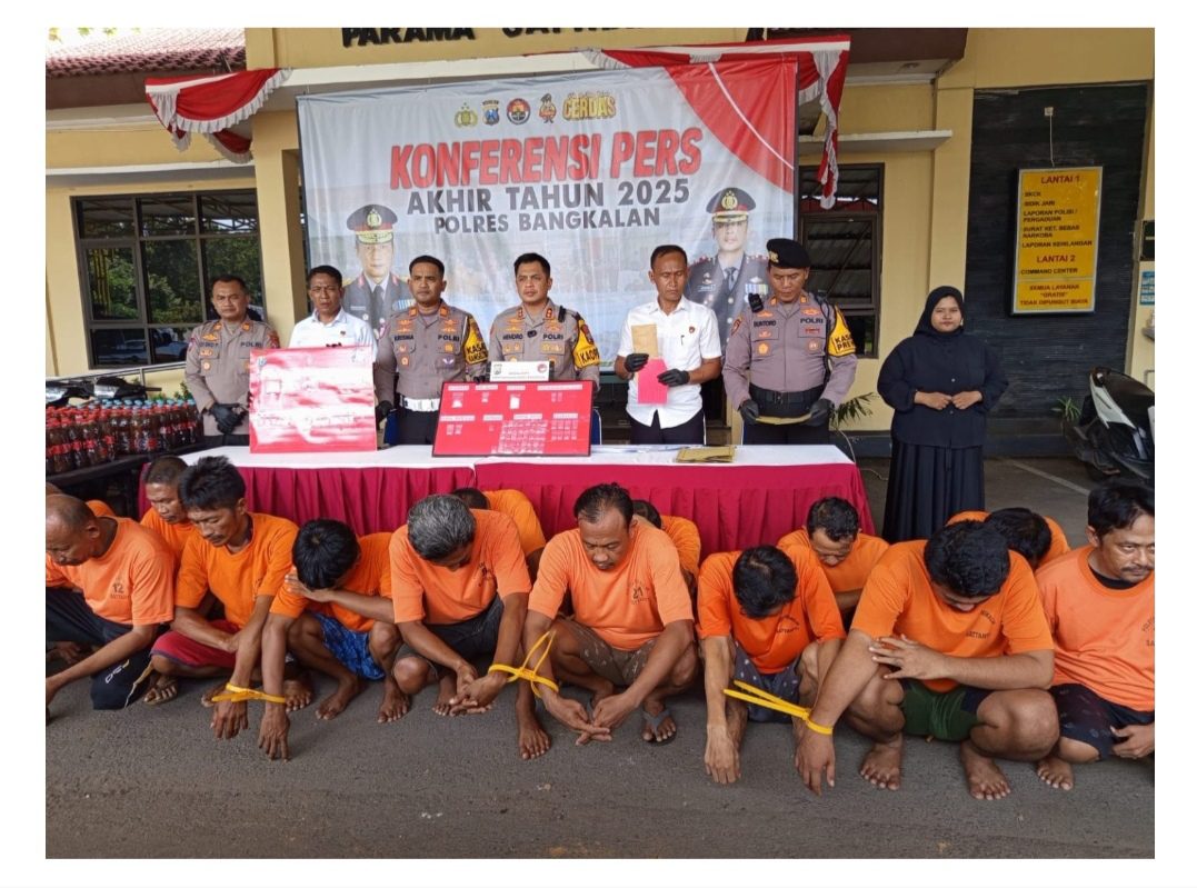 Bangkalan,- matarakyat.net Polres Bangkalan mencatat penurunan signifikan angka kecelakaan lalu lintas sepanjang tahun 2025. Hal tersebut disampaikan dalam Konferensi Pers Akhir Tahun 2025 yang dipimpin langsung oleh Kapolres Bangkalan AKBP Hendro Sukmono, S.H., S.I.K., M.I.K., Kasatreskrim, Kasatnarkoba, Kasatlantas dan Binmas Samapta. Senin (29/12/2025).
