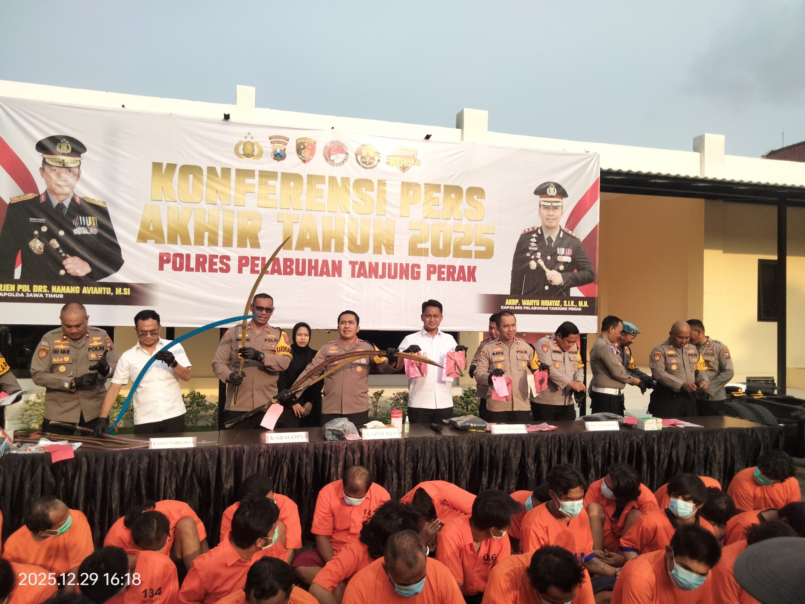 Dalam konferensi pers yang digelar pada 29 Desember 2025, Kapolres Pelabuhan Tanjung Perak AKBP Wahyu Hidayah, S.I.K., M.H., menyampaikan keberhasilan tersebut.