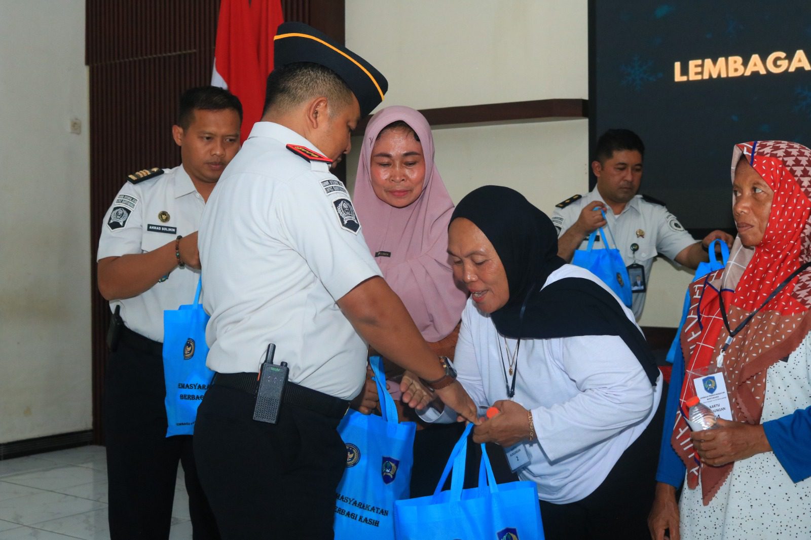 Kepala Lapas Banyuwangi, I Wayan Nurasta Wibawa, memimpin langsung jalannya pembagian paket sembako dengan didampingi oleh jajaran pejabat struktural. Sebanyak 28 paket sembako diserahkan kepada keluarga warga binaan, sedangkan 12 paket sembako dibagikan pada masyarakat sekitar.