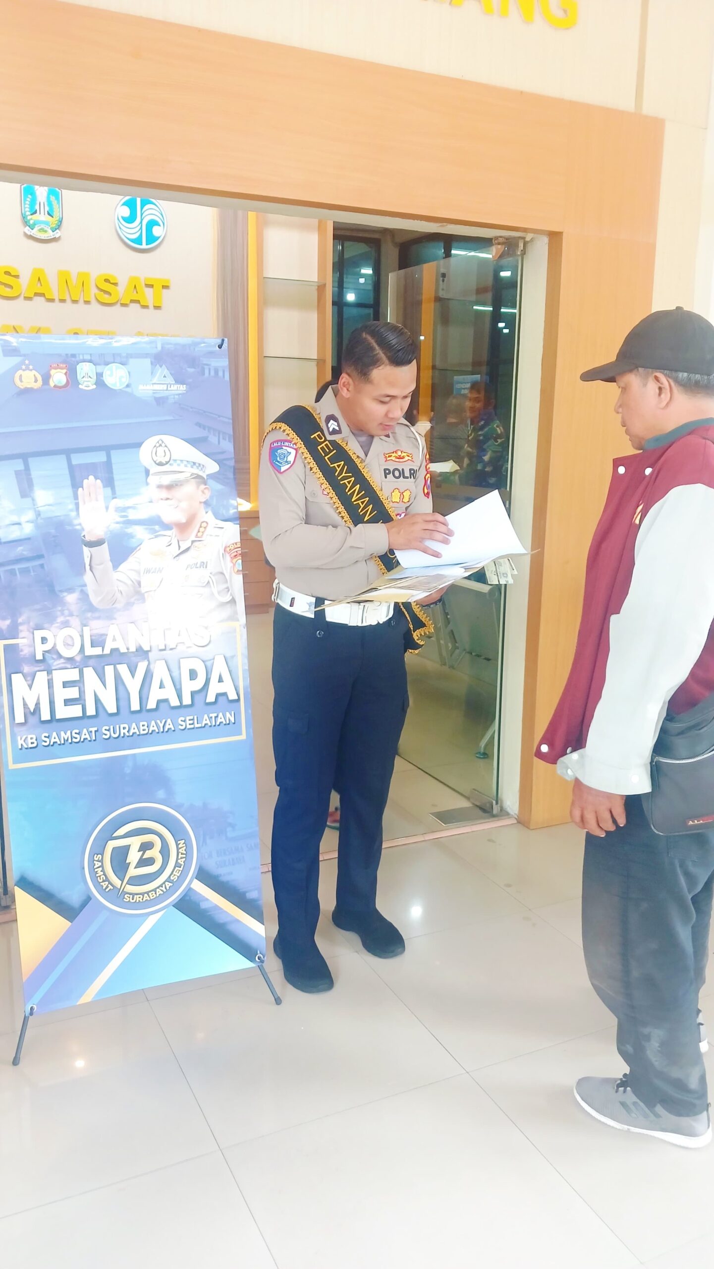 Surabaya // Matarakyat.Net – Kabar baik datang dari jajaran Samsat Surabaya Ketintang dengan hadirnya Polantas Menyapa diharapkan pelayanan lebih cepat dan prima.