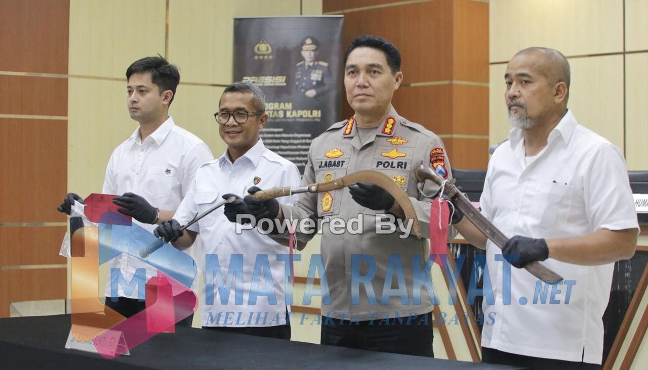 Dari pengungkapan kasus tersebut Polisi mengamankan Tiga orang tersangka berikut sejumlah barang bukti termasuk senjata tajam.