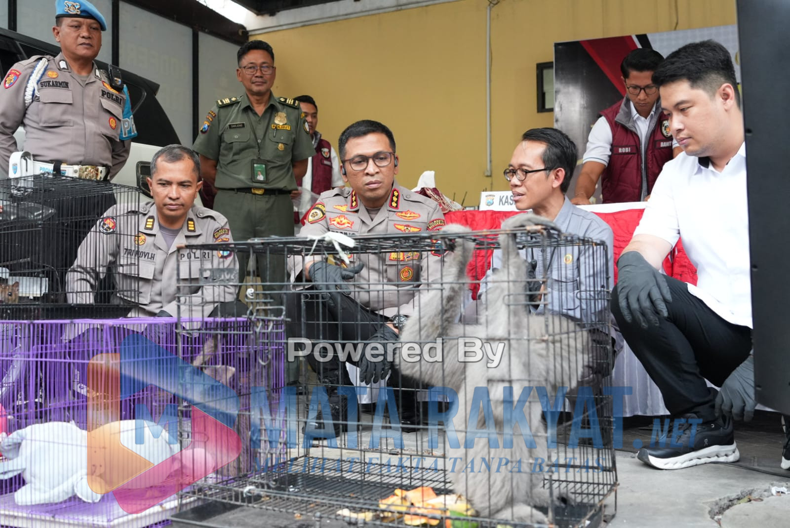 Selain mengamankan tersangka,Polisi juga menyita beberapa satwa dilindungi, di antaranya 1 ekor Burung Enggang Klihingan (Anorrhinus galeritus), 1 ekor Burung Julang Emas (Rhyticeros undulatus), 1 ekor Burung Kasturi Kepala Hitam (Lorius lory), 1 ekor Owa Jawa (Hylobates moloch), 1 ekor Lutung Jawa (Trachypithecus auratus), 1 ekor Owa Kalawait (Hylobates muelleri), serta 1 ekor Owa Kalimantan (Hylobates albibarbis).