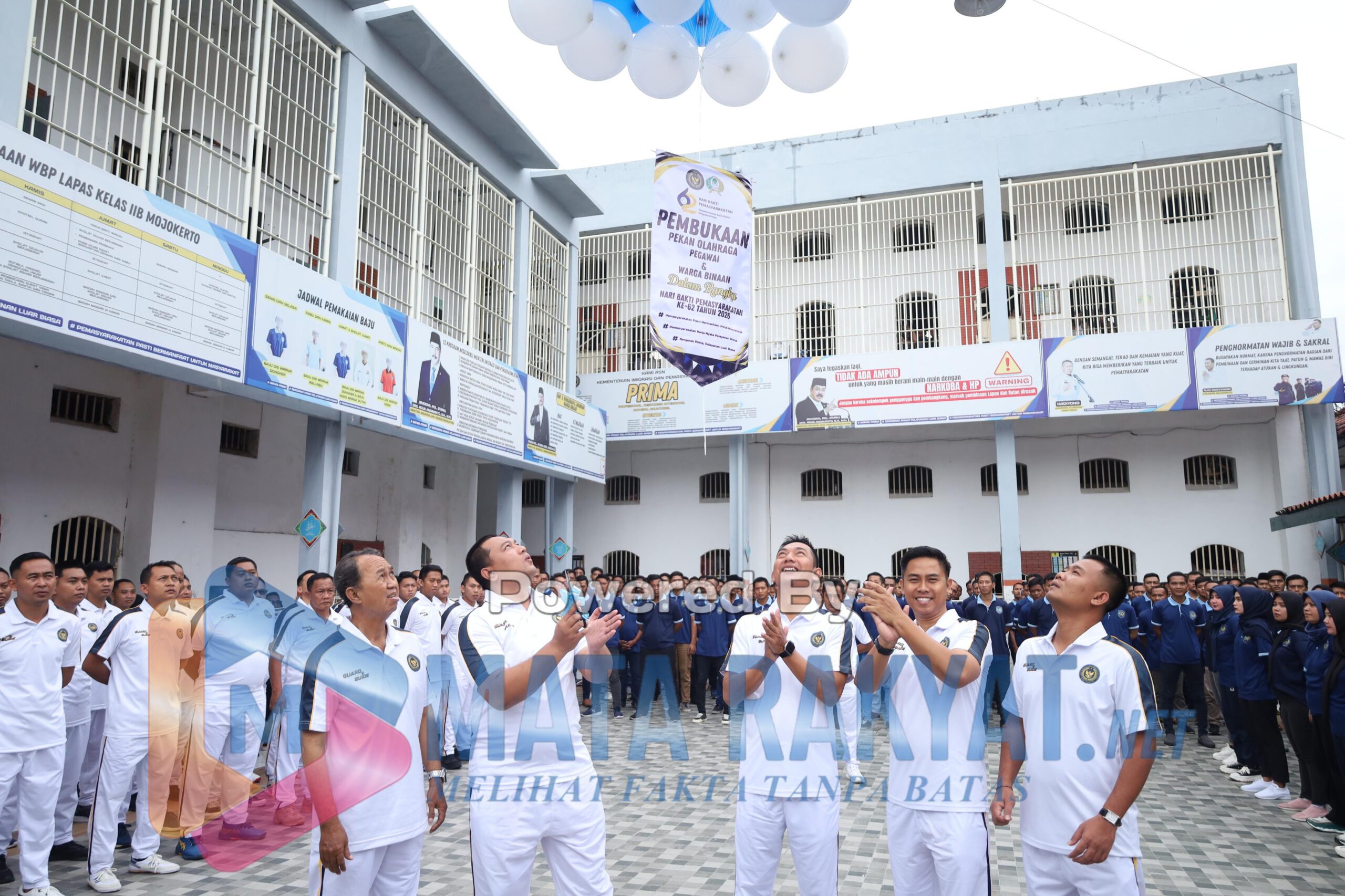 Matarakyat.net||Mojokerto – Lembaga Pemasyarakatan Kelas IIB Mojokerto menggelar lomba tarik tambang dalam rangka memeriahkan peringatan Hari Bakti Pemasyarakatan (HBP) Ke-62 Tahun 2026 di lapangan blok tahanan, Jumat 27/03/26.